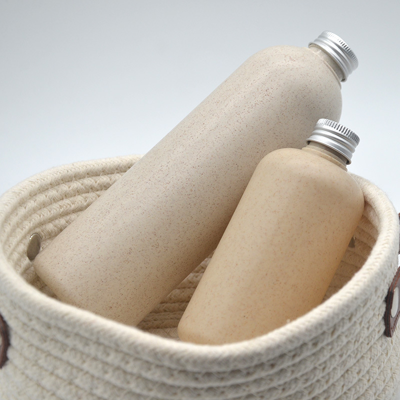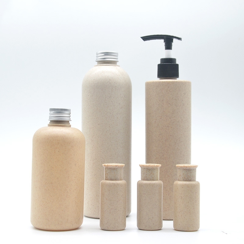 뚜껑이 있는 이 빈 화장품 30ml 100ml 250ml 300ml 500ml 로션 생분해성 밀짚 플라스틱 바디 버터 바디 크림 샴푸 병은 자연스러운 질감을 가지고 있어 제품에 단순한 미적 느낌을 주는데, 이는 전통적인 플라스틱 병과 다르며 사용자가 의식 감각을 향상시키는 데 도움이 될 수 있습니다.